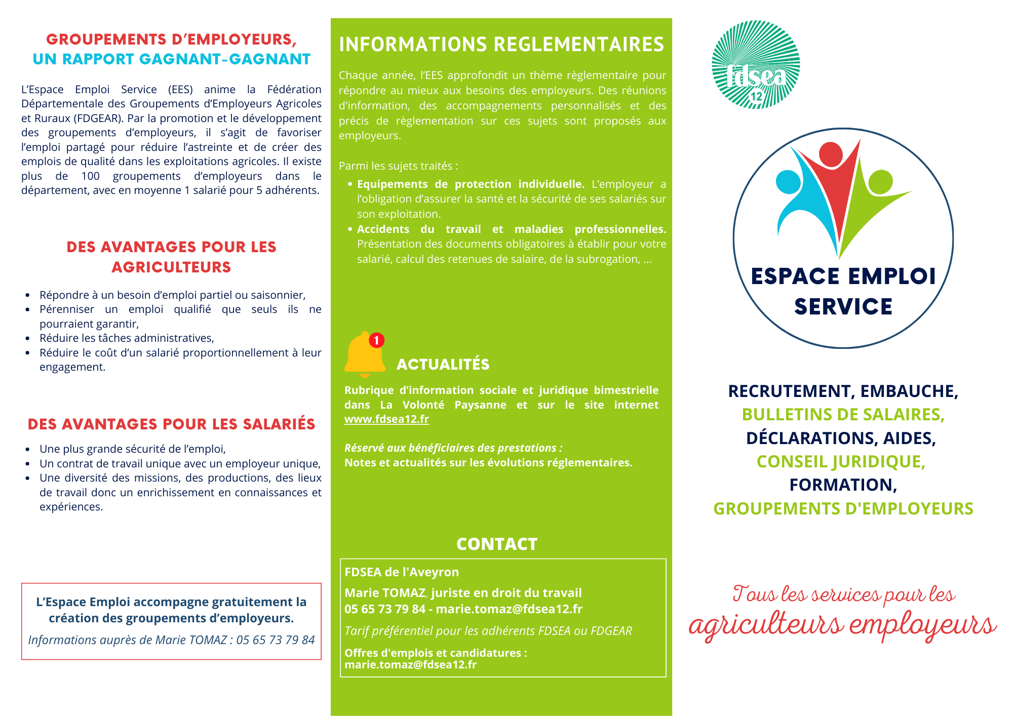 Il apporte conseils juridiques et informations sociales aux employeurs via la rubrique emploi de la Volonté Paysanne.